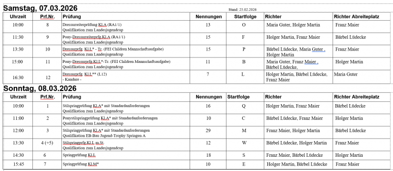 Zum Saisonauftakt in Schwendi, dem Sichtungsturnier des Württembergischen Pferdesportverband (WPSV) und dem Auftakt zum diesjährigen Landesjugendcup, liegt die Zeiteinteilung vor. In Schwendi findet das 43. Sichtungsturnier des Verbandes statt.