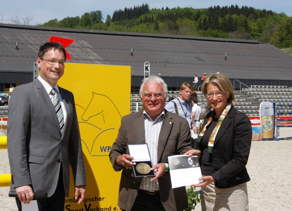 Im Rahmen der internationalen Vielseitigkeit in Marbach wurde am 8. Mai Fritz Gogel mit der Graf- Landsberg-Medaille in Bronze ausgezeichnet. Die Laudatio hielt Frank Reutter, der Präsident des Württembergischen Pferdesportverbandes (WPSV), der auch die Medaille überreichte.