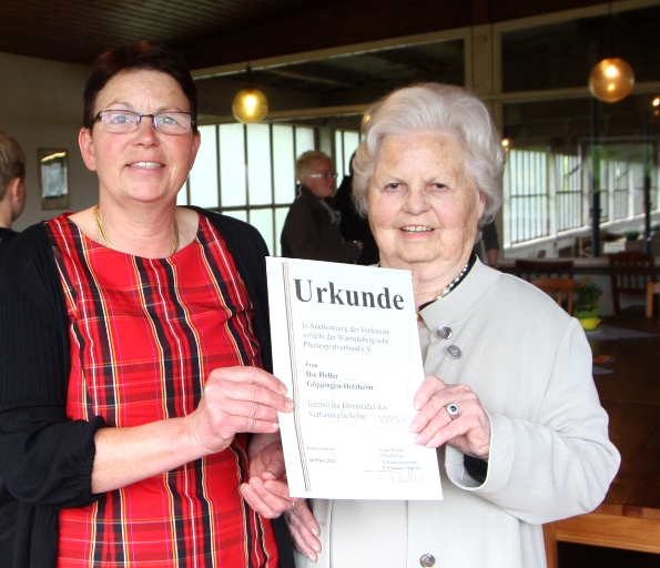 Im Rahmen des Göppinger Reitturniers am letzten Aprilwochenende wurde Ilse Holler (Göppingen-Holzheim) mit der silbernen Ehrennadel des Württembergischen Pferdesportverbandes ausgezeichnet.